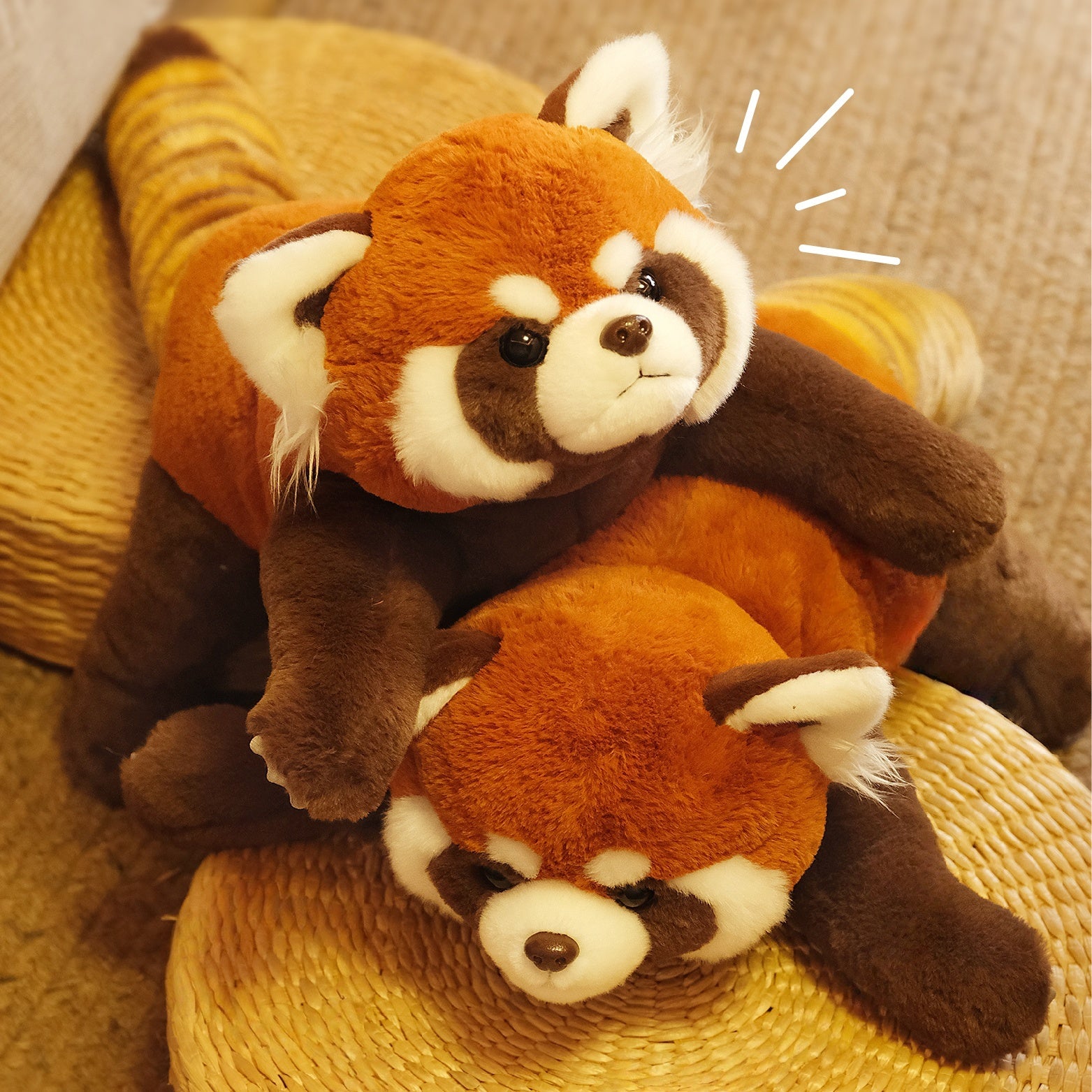 Adorabile panda rosso sdraiato in peluche: design ultra morbido, realistico e coccoloso